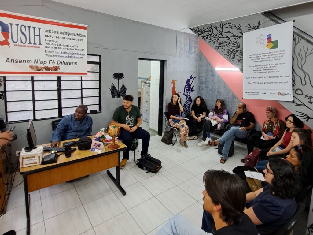 Oficina com visita guiada na União Social dos Imigrantes Haitianos (USIH), com Fedo Bacourt, fundador da associação e um dos pesquisadores bolsistas do Fronteiras Cruzadas.