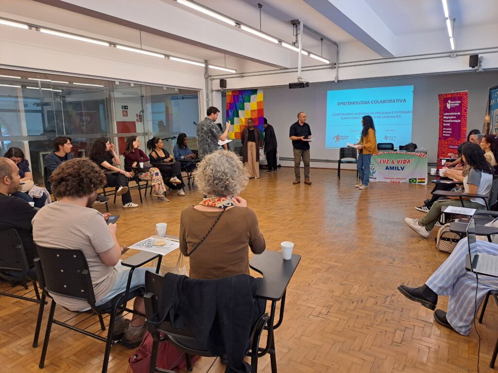 Realizamos a oficina “Epistemologia Colaborativa: construindo agendas de pesquisa e extensão junto com coletivos de migrantes”.